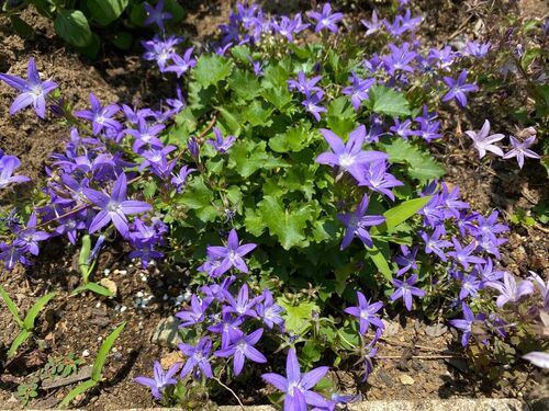 今回は常緑のグランドカバー『アルペンブルー』の紹介です。アルペンブルーは,キキョウ科カンパニュラ属の常緑多年草で,初夏に星形の青紫花を株いっぱいに咲かせるくれるのが特徴です。 以前の記事で『アルペンホワイト』の春購入のポット苗の1年の成長記…