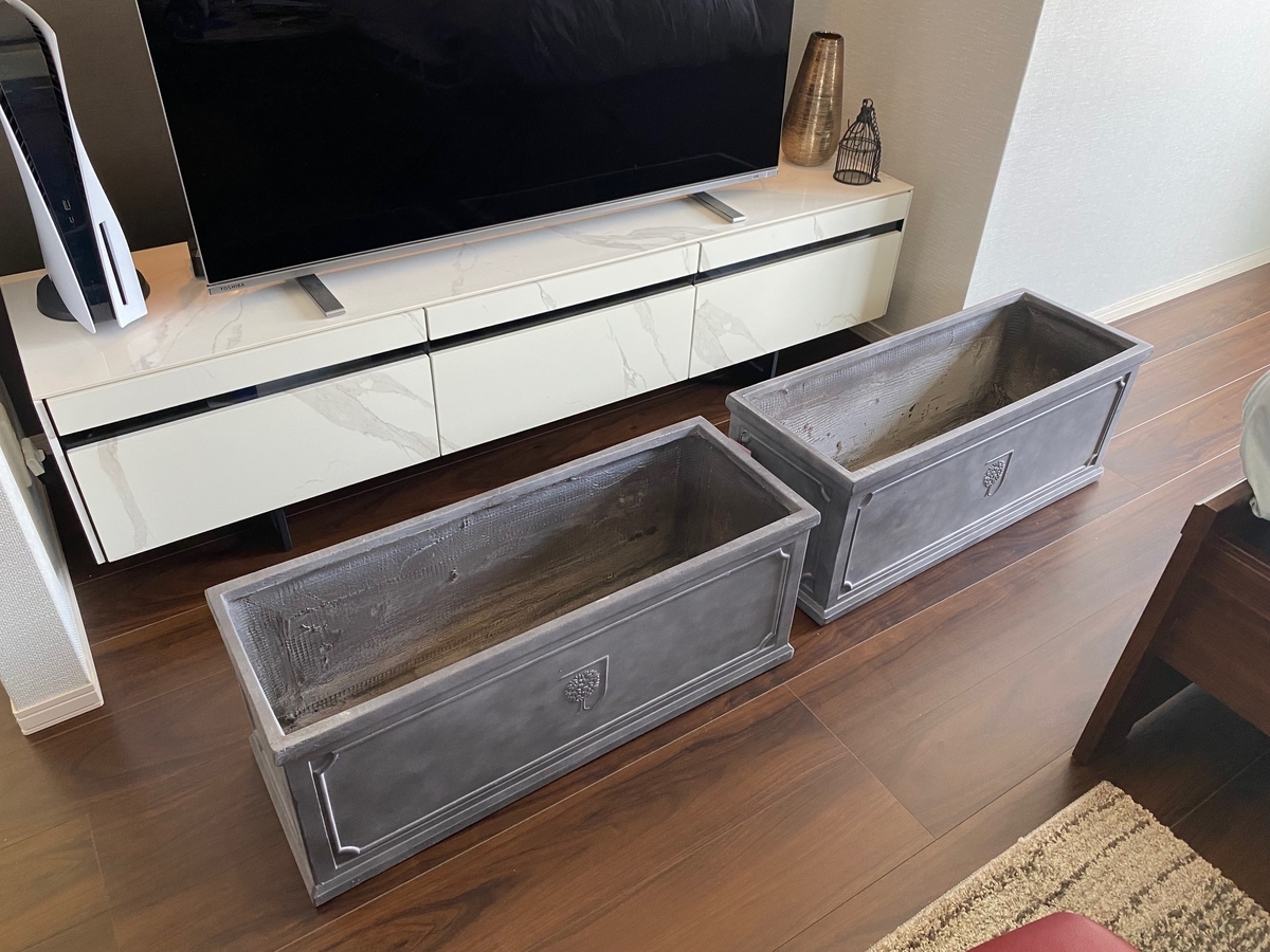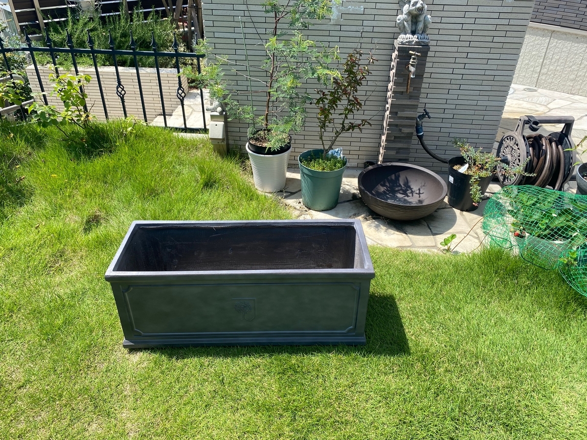 今回はグレー系を求めていたので,最終的に選んだのはこのプランターです。 決め手はデザインが一番気に入ったのと,何よりサイズ(幅75cm×奥行28cm×高29cm,8.24kg)がちょうど良かったからです。