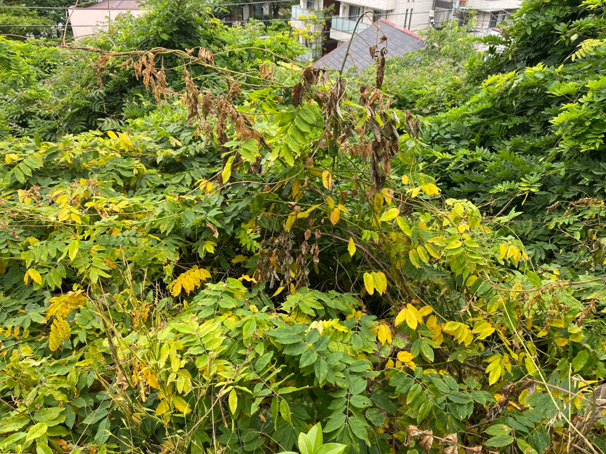 尋常でない繁殖スピードを誇るこのツル性植物ですが,除草剤散布1か月後には完全に枯らすことができました。